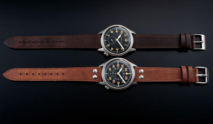 - なお、後者については誤解のなきようひと言付け加えておきます。秒表示が大きく扱われているのは、当時夜間の偵察の際に暗闇のなかでも秒単位で正確な経過時間と進路を記録できるようにするためのものでした。そのため本来はセンターセコンド(秒針が時分針と同軸にあるタイプのこと)でなければなりません。しかし、今回は冒頭でもお伝えしたようにスモセコにこだわったことと、見た目のカッコ良さから、このデザインをあえて採用させていただきました。